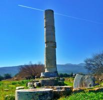Λίγο έξω από το σημερινό Ηραίο, στη νότια Σάμο, ανάμεσα σε λεύκες, ελαιώνες και αρχαιολογική σιωπή, στέκεται μια μοναδική όρθια κολώνα. Είναι ό,τι απέμεινε από ένα αρχιτεκτονικό θαύμα της αρχαιότητας: τον Ναό της Ήρας, γνωστό και ως Ηραίον Σάμου.