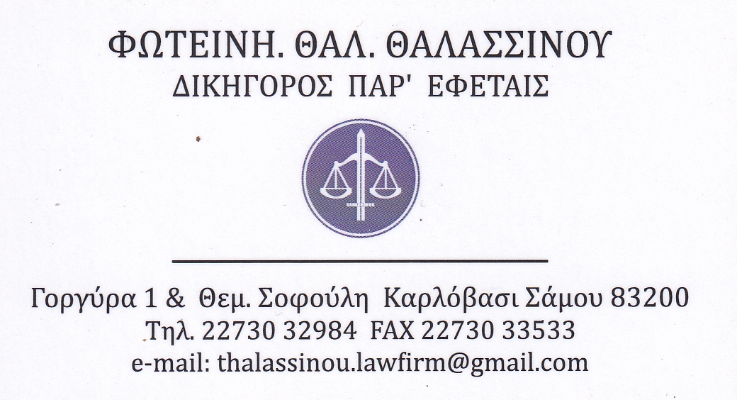 ⚖️ Φωτεινή Θαλ. Θαλασσινού Δικηγόρος Παρ’ Εφέταις